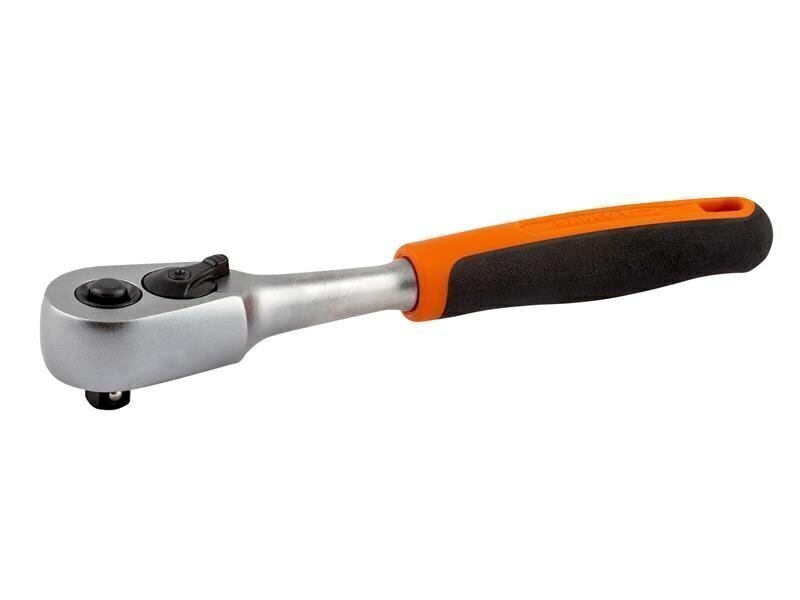 The Bahco 1/4in drive Quick Release Reversible Ratchet with 60 teeth and 6° action angle. Made from high quality CrV steel with a nickel and matte chrome finish. It has a quick-release function for easy and safe operation. There is also a quick, easy direction change lever on the wrench head. Fitted with a comfortable non-slip two-component handle. An integrated hanging hole makes it easy to store.