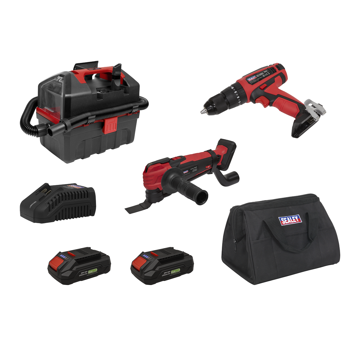 Sealey CP20VCOMBO5EU 3 x SV20 Series Cordless Power Tool Vac Kit 20V Euro Plug - 2 Batteries