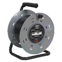 This Faithfull Power Plus Enclosed Cable Reel features 2 shuttered sockets with a maximum load of 16A (1,760W) fully unwound or 6A (660W) wound. The robust semi-enclosed easy reel accurately guides the cable onto and off the drum and ensures that the cable is protected while in storage or transit. A thermal overload protection system prevents overheating from damaging the cable. The cable reel also features a BS approved plug and a carry handle with a rotating fast rewind knob. A flat base keeps the reel upright for easy storage.