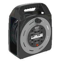 Faithfull Open Drum Cable Reel with twin 240V sockets. The 1.25mm² cable is fitted with a standard 240V plug. For added safety, the reel is fitted with a thermal overload protection system to prevent overheating damaging the cable when in use. The heavy-duty plastic drum is mounted on a sturdy steel frame with a textured grip for user comfort. Complies to BS EN 61242.