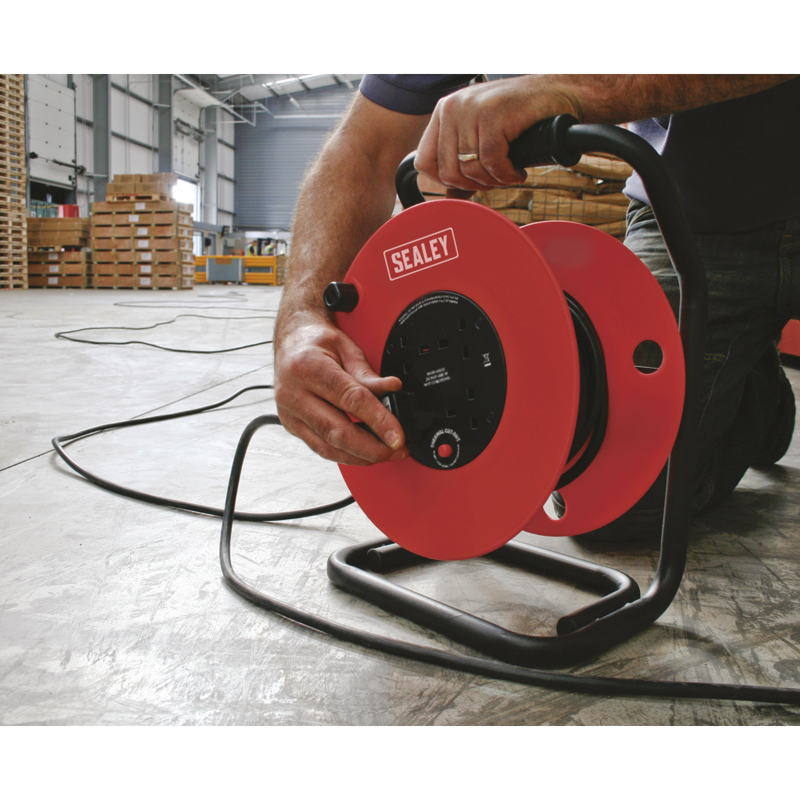 Sealey CR25025 Cable Reel 50m 4 x 230V 2.5mm Heavy-Duty Thermal Trip