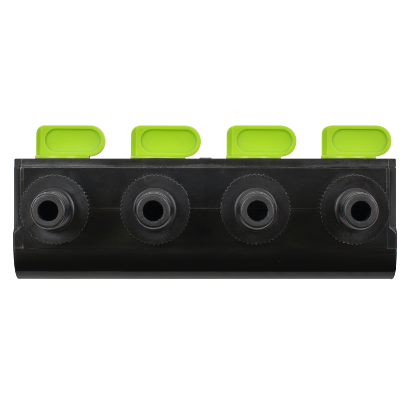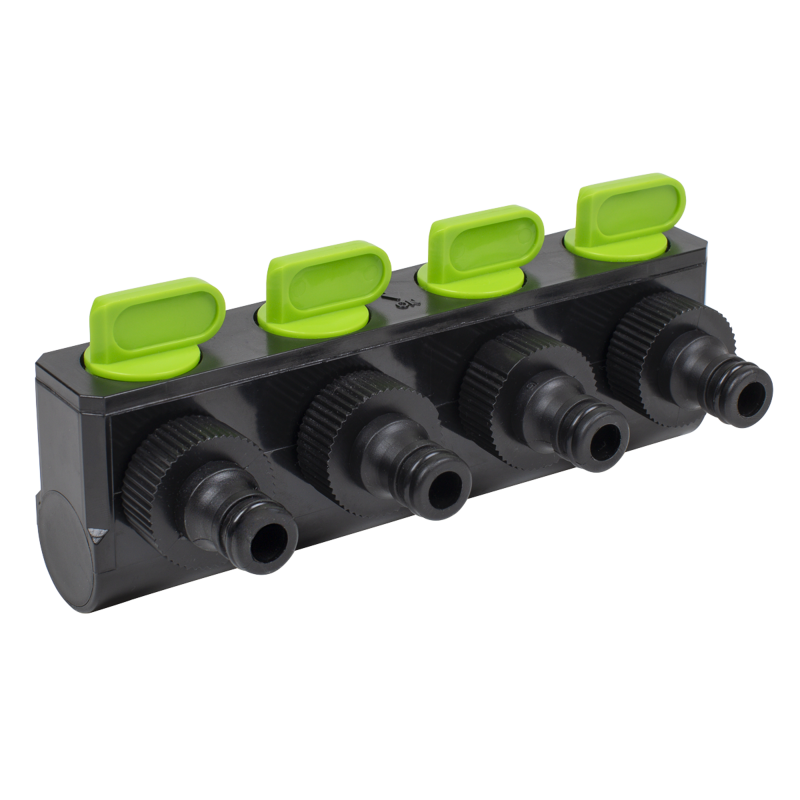 GARDEN CONNECTOR - Converts a single tap into four hose outlets.FLOW CONTROL - Each hose outlet has independent flow control.