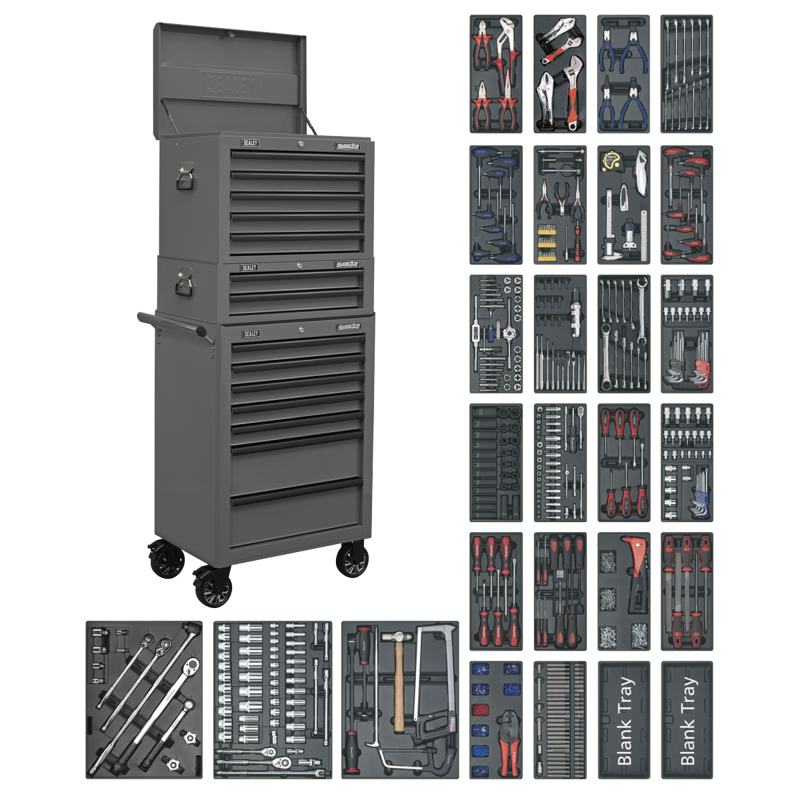 Sealey SPTGRCOMBO1 Tool Chest Combination 14 Drawer with Ball-Bearing Slides - Grey 1179pc Tool Kit