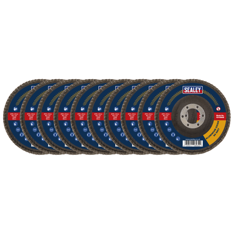 Sealey FD115EMIX Assorted Grit Flap Discs Aluminium Oxide 115mm 22mm Bore (Pack of 10)