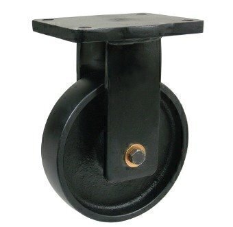 BZQF200CRBJ/60 200mm Black Elastic Rubber on Cast Iron Heavy Duty Castor - Fixed 4 Bolt Unbraked