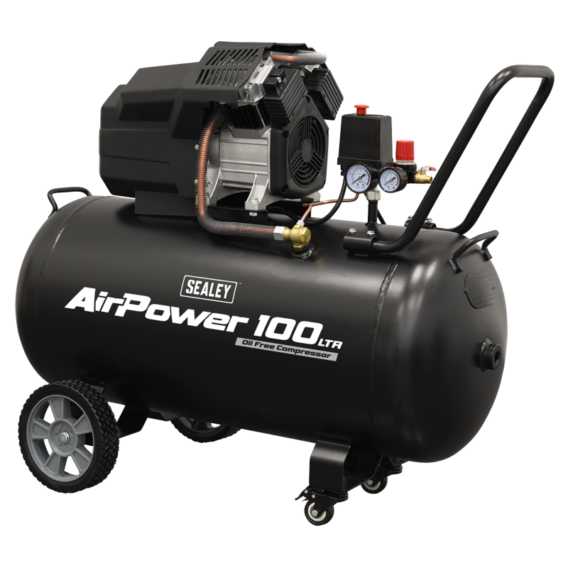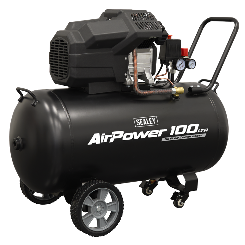Sealey SAC10002 Air Compressor 100L V-Twin Oil Free Direct Drive 3hp