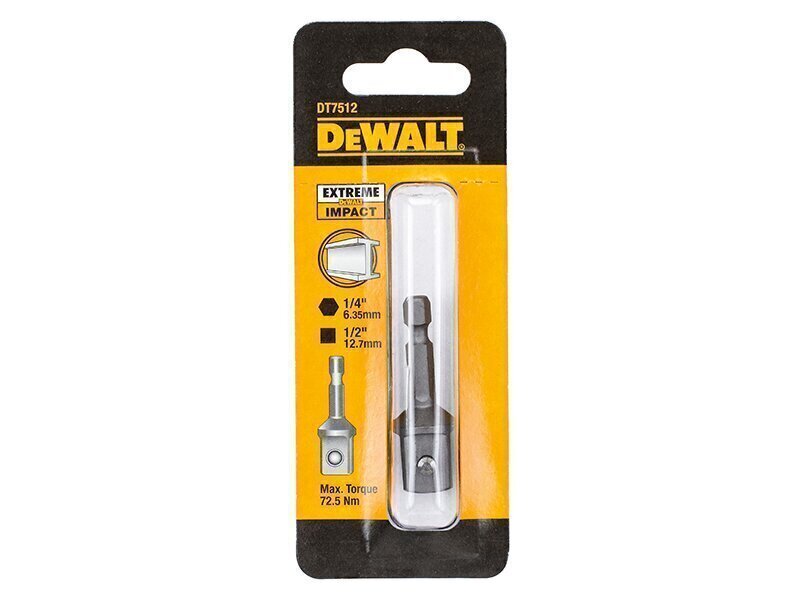 The DEWALT DT7512 is a 1/4in hex to 1/2in square conversion adaptor.