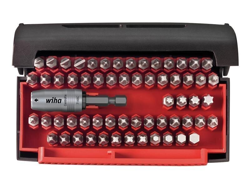 The Wiha Collector Standard Bit Set 61 Piece for both machine and hand operation. The robust Collector box is made from high-tensile plastic. The box opens automatically at the press of a button.