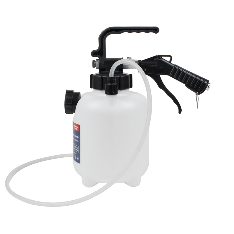 ONE-PERSON OPERATION - Professional pneumatic brake and clutch bleeding tool.LARGE 2.5L RESERVOIR - Flush the entire system with one fill, without the risk of running the reservoir dry.