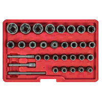 1/4"Sq Drive Bolt Extractor Set; 6mm, 6.2mm, 6.5mm, 6.7mm, 7mm, 7.2mm, 7.5mm, 7.7mm, 8mm, 8.2mm, 8.5mm, 8.7mm, 9mm, 9.2mm, 9.5mm, 10mm, 3/8"Sq Drive Bolt Extractor Set; 1/4", 5/16(8mm), 3/8", 10mm, 7/16(11mm), 12mm, 1/2", 13mm, 9/16(14mm), 5/8(16mm), 17mm