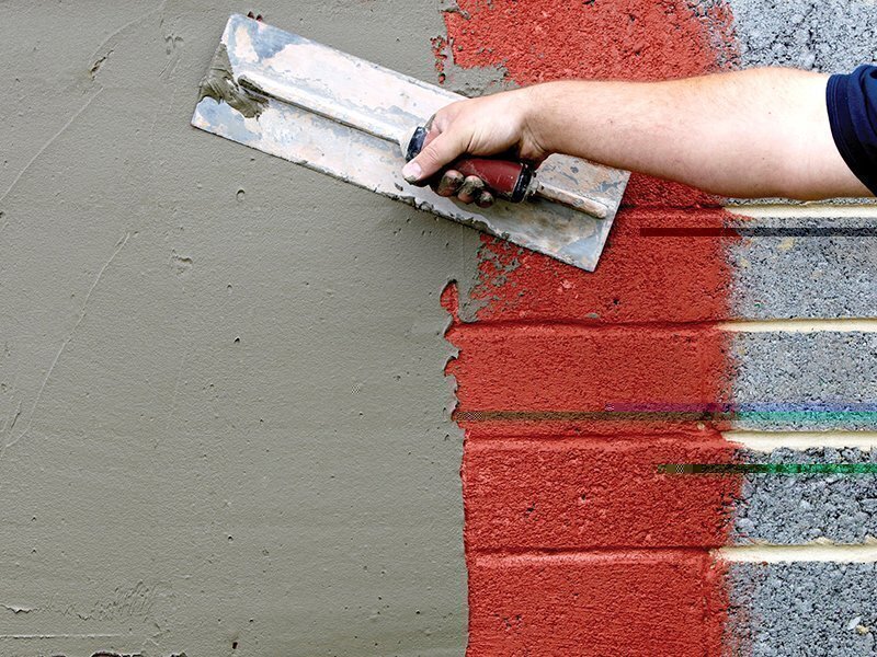 After one coat application Rendagrip can render when dry, where the red colour indicates coverage, and can be applied to damp surfaces.