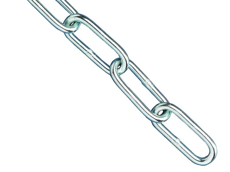 These Faithfull welded steel chains are made with the link side welded for extra strength. They have mild steel welded straight links made to form an A style short link chain. The chains are bright zinc plated and ideal for general purpose applications such as securing loads.