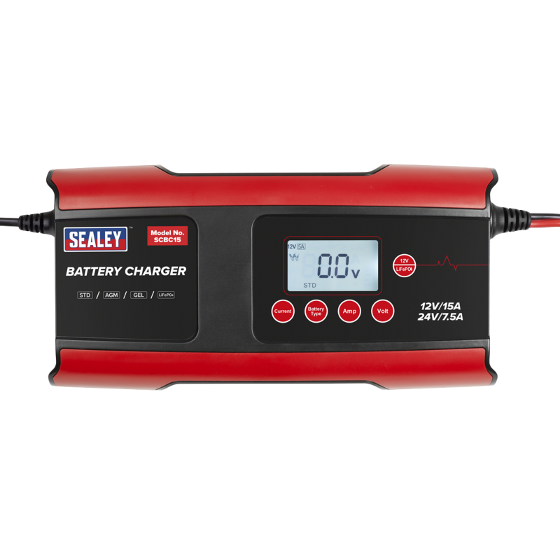 Sealey SCBC15 12/24V Compact Smart Battery Charger Maintainer 15A
