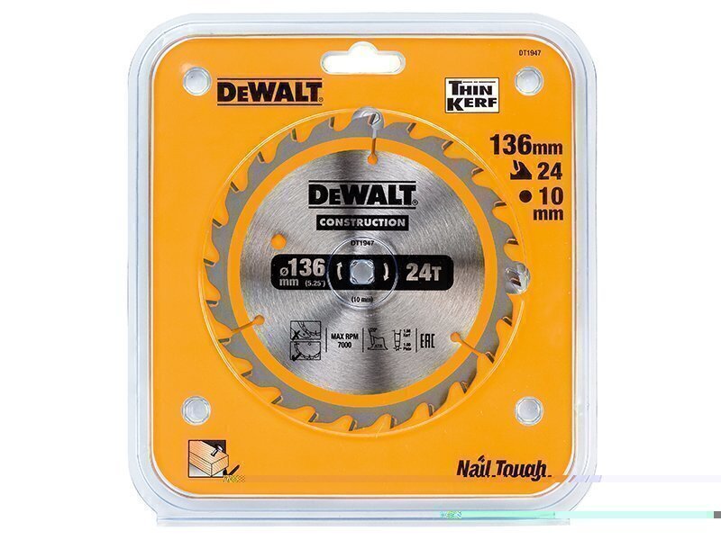 DEWALT Cordless Construction Trim Saw Blade 136 x 10mm x 24T