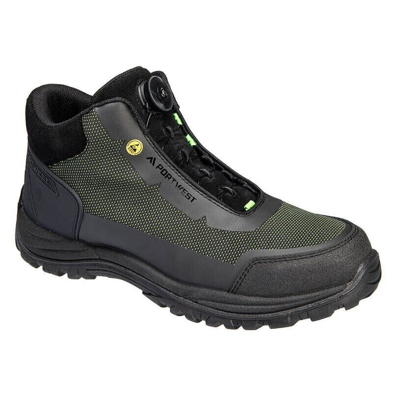 Portwest Girder Composite Mid Boot S3S ESD SR FO (Black/Green / 45 / Regular Fit)