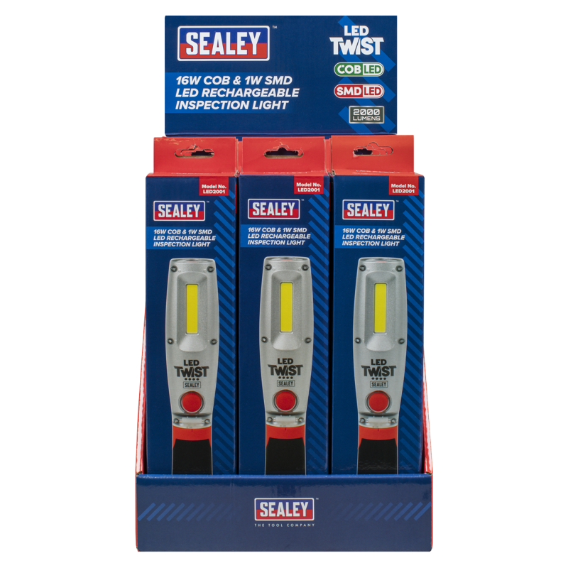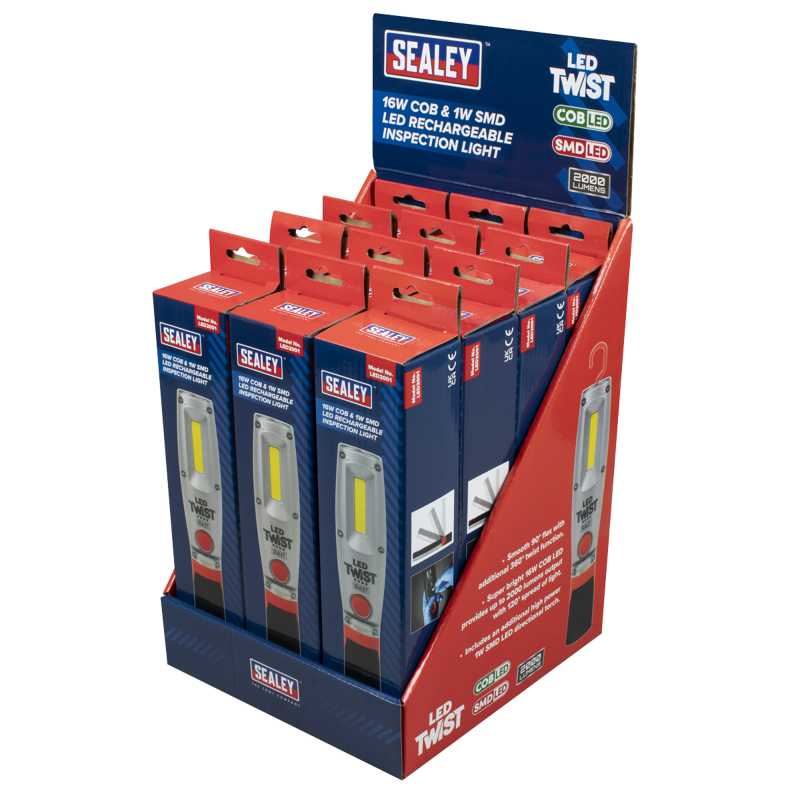 Sealey LED2001DB LED Twist Rechargeable Inspection Light 16W COB 1W SMD - Display Box of 12
