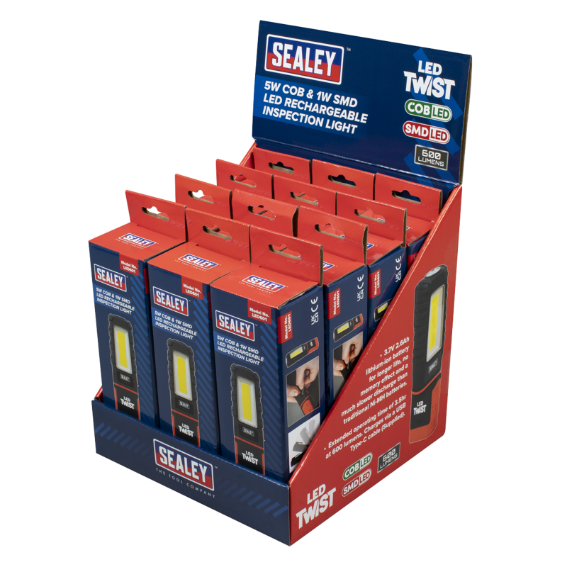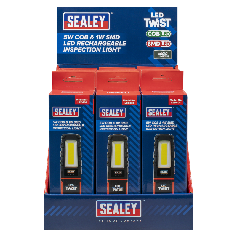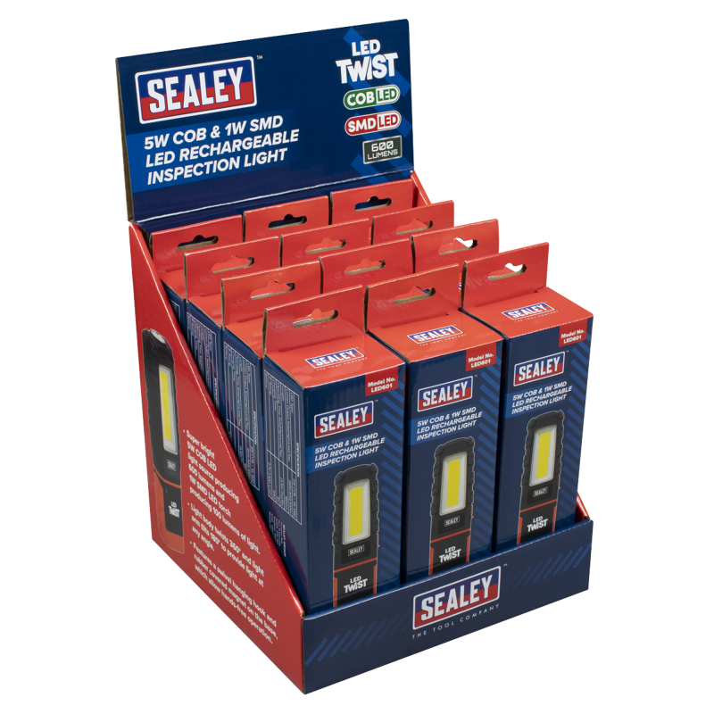Sealey LED601DB LED Twist Rechargeable Inspection Light 5W COB 1W SMD - Display Box of 12