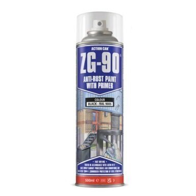 Action Can ZG-90 Black Rapid Dry Galvanise & Anti-Rust Paint with Primer 500ml