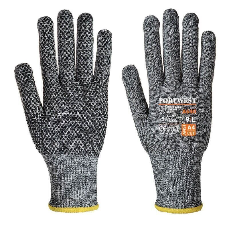 Sabre-Dot Glove Premium cut resistant liner, provides superior protection achieving the cut level D. The addition of PVC dots to the palm improves grip performance thereby providing added security for sharp objects being held by the hand.