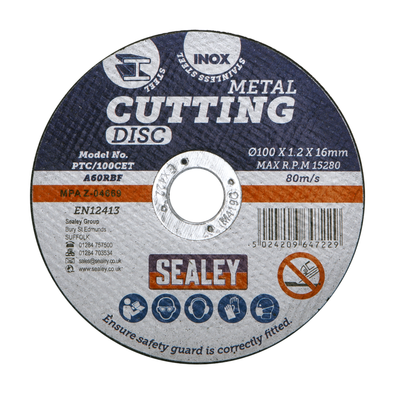 General-purpose flat cutting disc recommended for use with Sealey and other leading makes of grinding and cutting power tools.Suitable for cutting stainless steel.