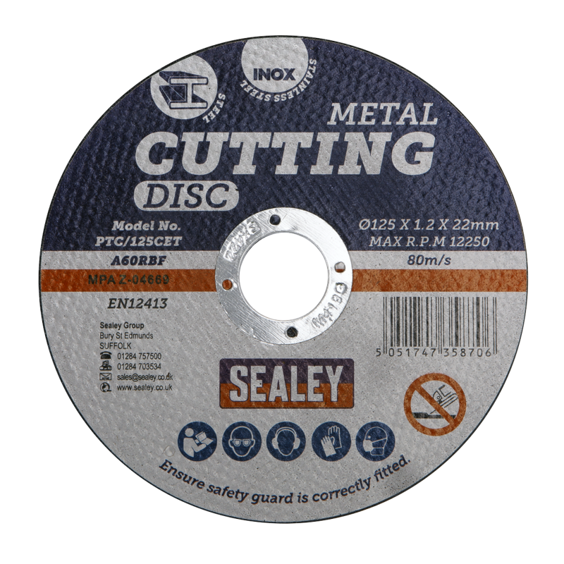 General-purpose flat cutting disc recommended for use with Sealey and other leading makes of grinding and cutting power tools.Suitable for cutting stainless steel.