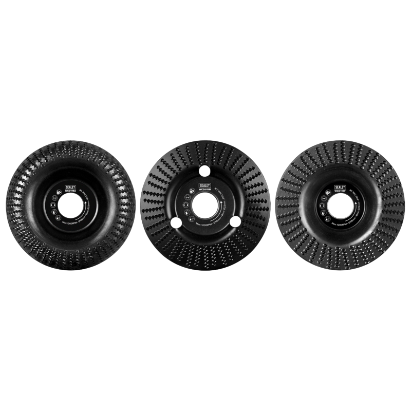 APPLICATION - Wood carving discs used to remove paint and carve a variety of wood surfaces such as benches or tables.COMPATIBILITY - For use with Sealey and other leading brands of angle grinders.