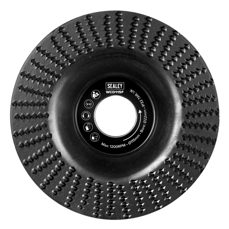 APPLICATION - Wood carving disc used to remove paint and carve a variety of wood surfaces such as benches or tables.COMPATIBILITY - For use with Sealey and other leading brands of angle grinders.