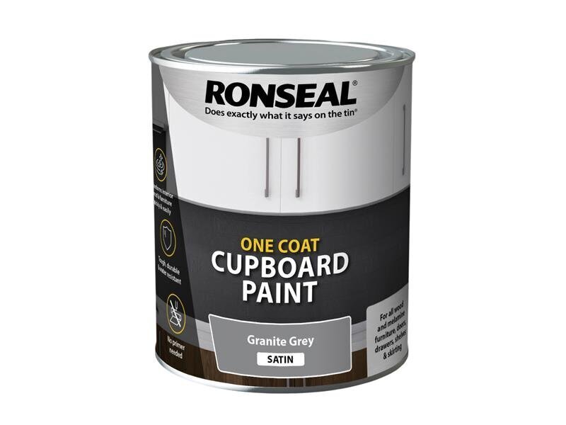 Ronseal One Coat Cupboard Paint Granite Grey Satin 750ml