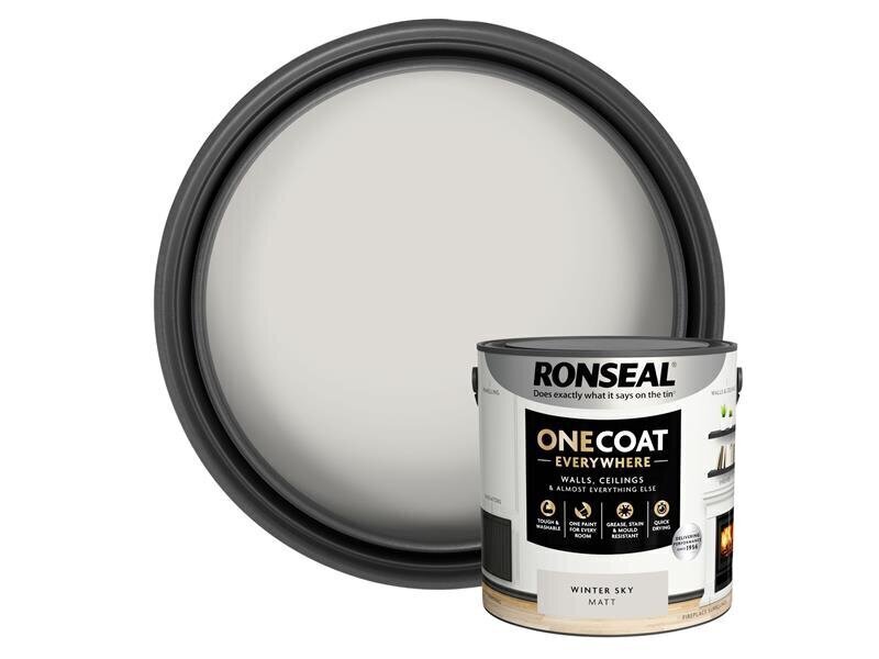 Ronseal One Coat Everywhere paint makes decorating your whole home easier and quicker. It\'ll give rich colour and tough protection to walls, ceilings and pretty much anything else you want to paint. It\'s stain resistant and washable, ready to stand up to the challenges of every day life.