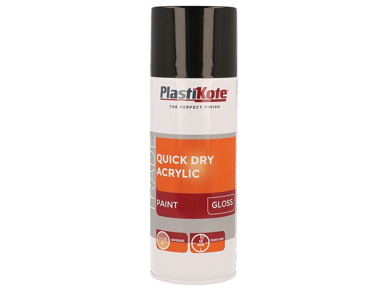 PlastiKote Trade Quick Dry Acrylic Spray Paint Gloss Black 400ml