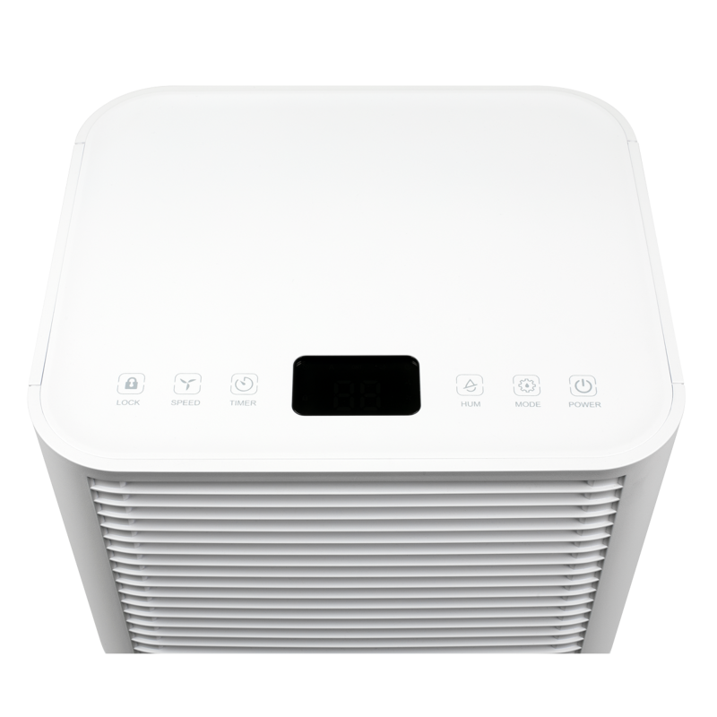 Digital control panel, LED display and 3-colour indicator to show different RH levels.