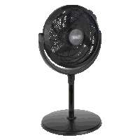 Versatile fan manufactured from durable composite material with three height stages and 3-speeds.Adding or removing threaded extension sections converts the fan between a stand, low stand and desk fan with no need for tools.