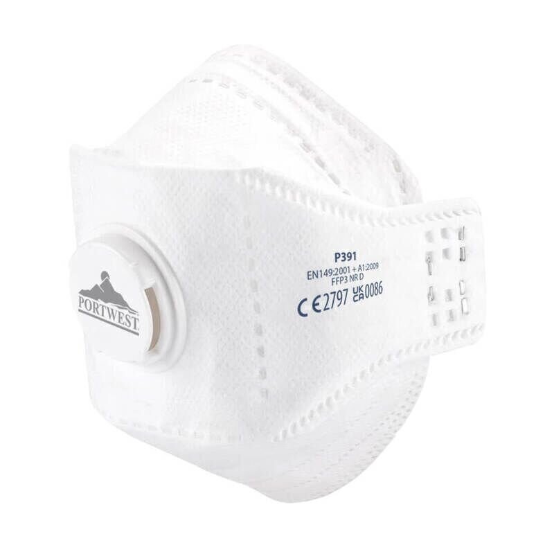 Portwest EAGLE FFP3 Valved Dolomite Fold Flat Respirator (Pk10) (White / R) P391WHR