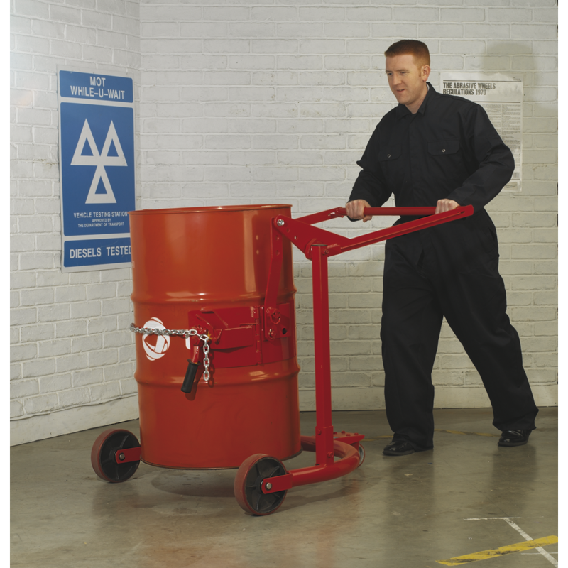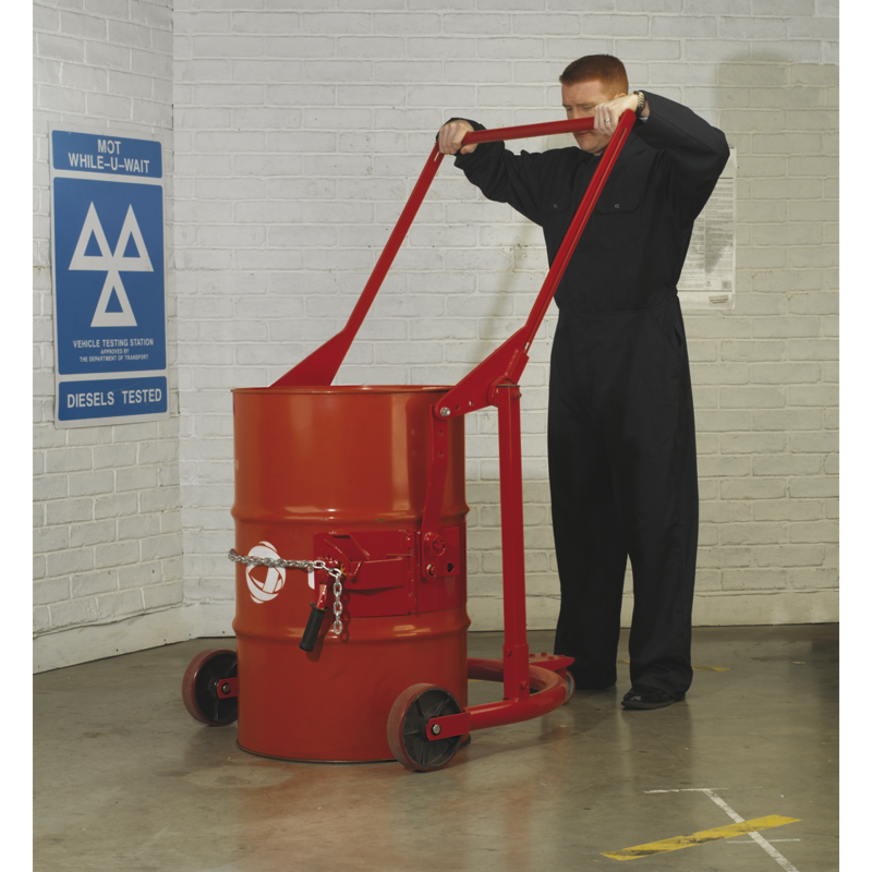 Ideal for manoeuvring, relocating and draining fully loaded drums.Lever handle raises drum in stages with fingertip operated locks.