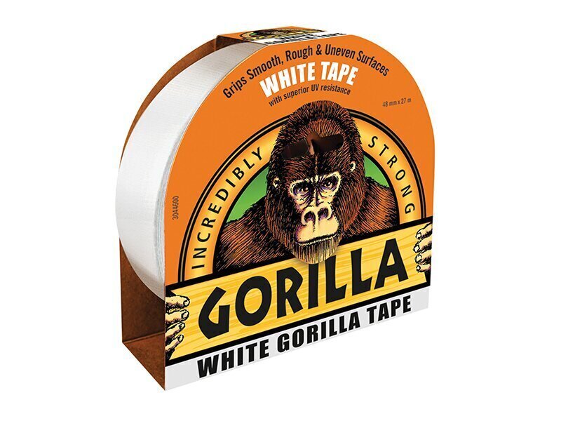 Gorilla Tape® White grips smooth, rough and uneven surfaces. It is a tough all-weather tape which is UV resistant. It has strong, reinforced backing and double thick adhesive.