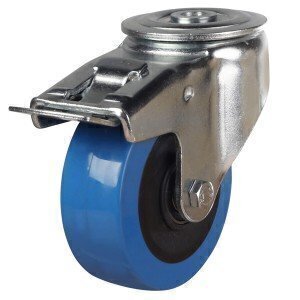 100DRHBH12EPNBJSWB 100mm Heavy Duty Elastic Polyurethane On Nylon Centre Bolt Hole Braked Castor