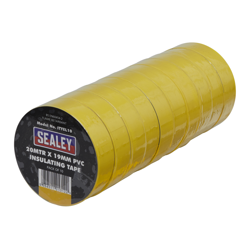 Sealey ITYEL10 PVC Insulating Tape 19mm x 20m Yellow Pack of 10