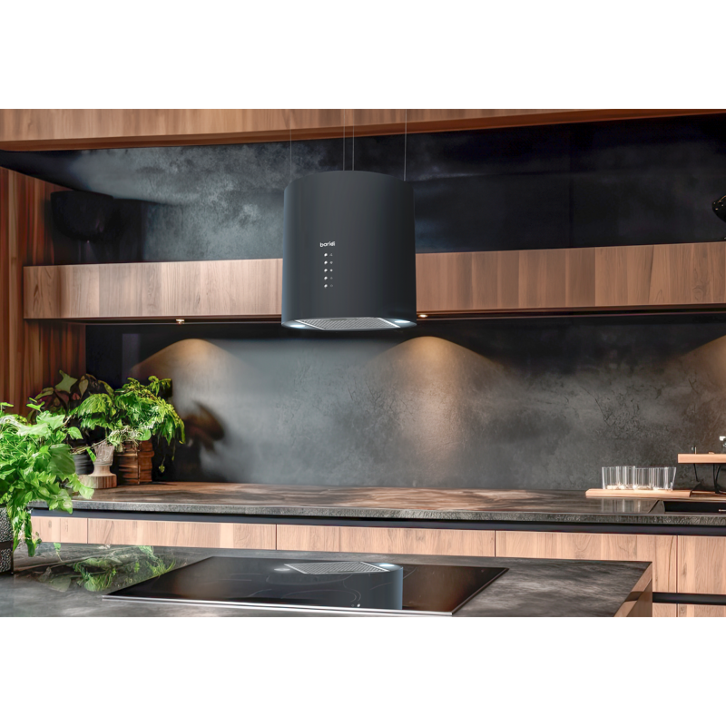 ISLAND-CENTRIC FUNCTIONALITY - Designed specifically for island installations, this cooker hood is strategically positioned to effectively capture and eliminate airbourne particles, making it an ideal choice for open-concept kitchen layouts.