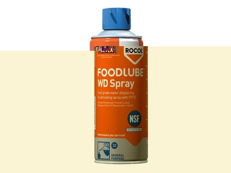 ROCOL FOODLUBE® WD Spray has a non-toxic, silicone-free formulation that is fortified with PTFE. Excellent anti-wear and lubricating properties with a superior penetrating and cleaning performance. Suitable for general use in food, beverage and pharmaceutical plants.