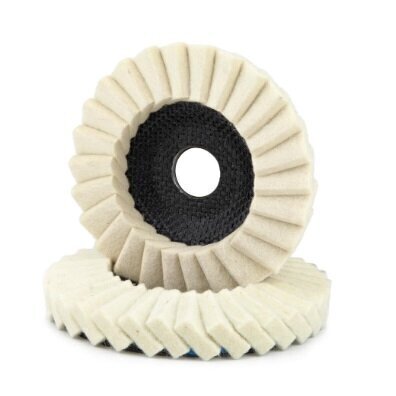 Felt Flap Discs with fiberglass backing for mirror polishing. To be used with abrasives pastes on low speed angle grinders.