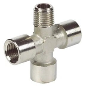 Ideal for creating multi-directional connections in compressed air systems, this cross fitting enables efficient distribution of airflow in pneumatic applications. Commonly used in industrial automation, manufacturing equipment, and pneumatic control systems where reliable air distribution is essential.