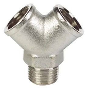 1/8inch BSP Y Connector with Male Inlet Nickel Plated Brass Threaded Adaptor
