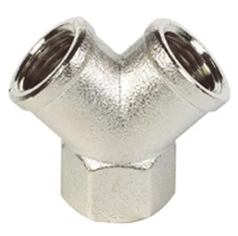 A high-quality nickel plated brass Y connector designed for pneumatic applications where flow splitting or merging is required. This female threaded adaptor features BSPP (British Standard Pipe Parallel) connections on all three ports.