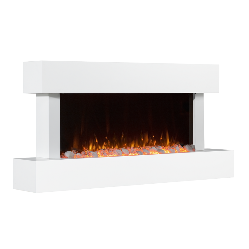 SOOTHING LED FLAME EFFECT - Create a relaxing and cozy space with a choice of three flame effect settings and two fuel options of either logs or small pebbles. PROGRAMMABLE TIMER - With a 7-day timer and two programmable periods each day, heat your room only when required. Supplied with remote control, so you can manage your fireplace from the comfort of your chair.
