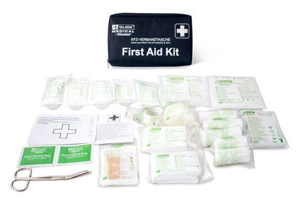 GERMAN FIRST AID KIT TO DIN 13164 -2014 FOR VEHICLESVEHICLE FIRST AID KIT IN TRAVEL BAGThis first aid kit is designed to meet Din 13164-2014 which details the requirements or the contents of a vehicle first aid kit
