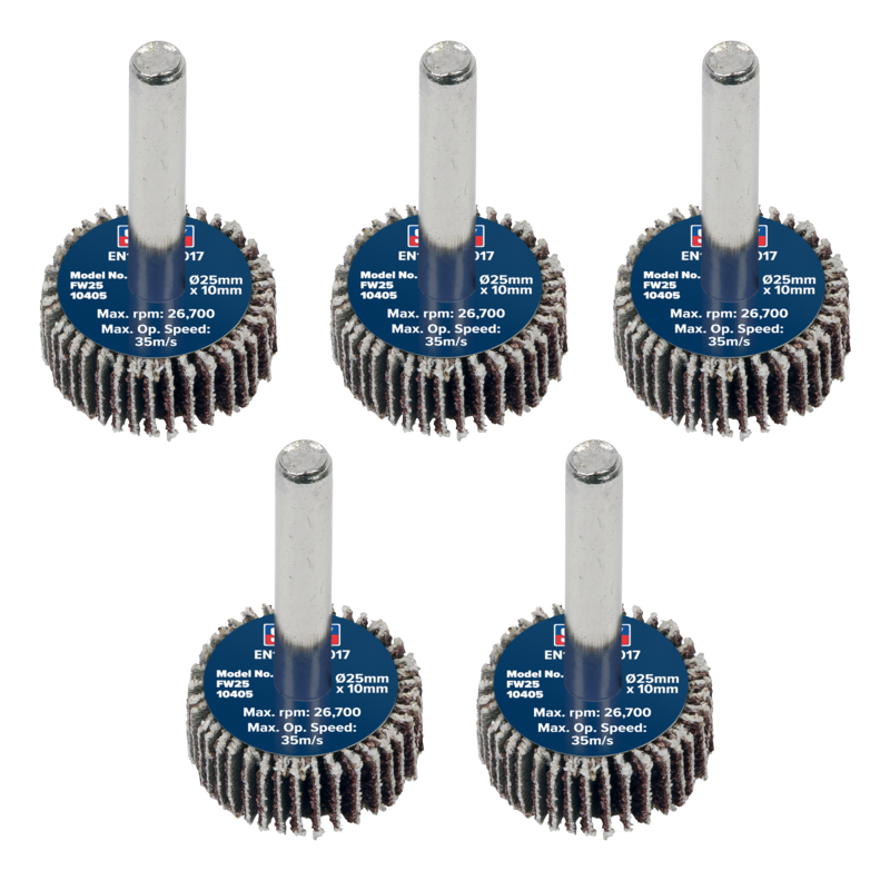 Sealey FW2510405 Abrasive Flap Wheel 25 x 10mm 6mm Shaft 40 Grit (Pack of 5)