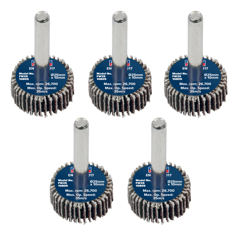 Sealey FW2510805 Abrasive Flap Wheel 25 x 10mm 6mm Shaft 80 Grit (Pack of 5)