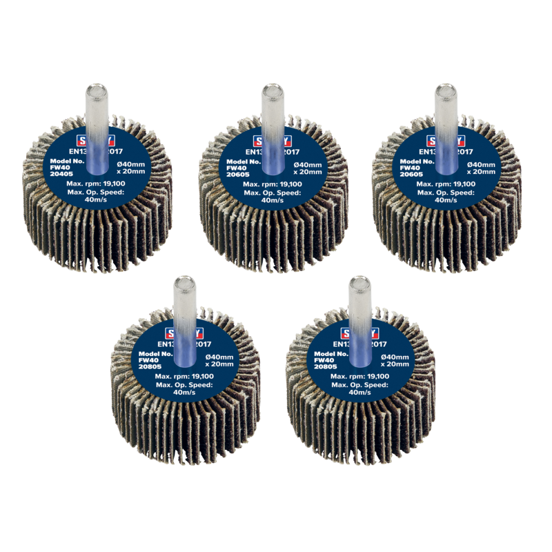 Sealey FW4020ASS Abrasive Flap Wheel 40 x 20mm 6mm Shaft Assorted Grit (Pack of 5)