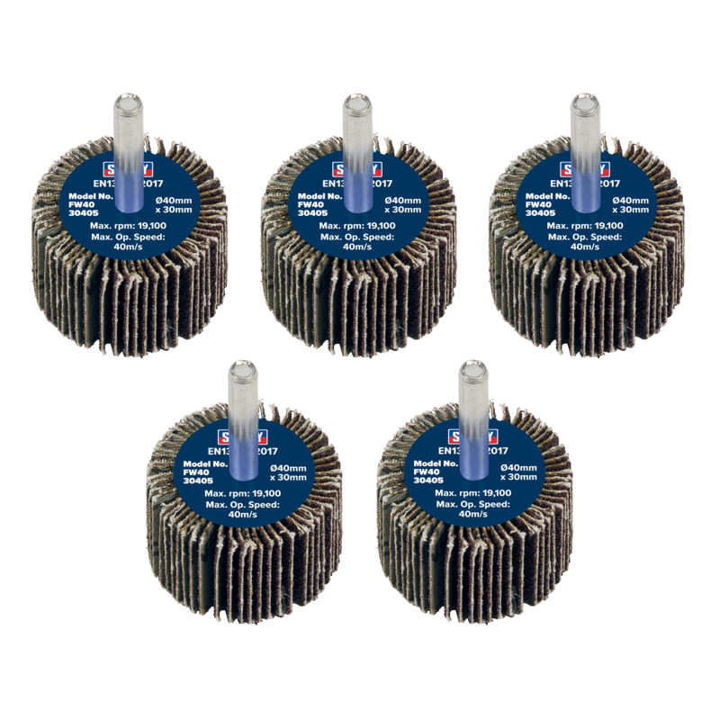 Sealey FW4030405 Abrasive Flap Wheel 40 x 30mm 40 Grit 6mm Shaft (Pack of 5)
