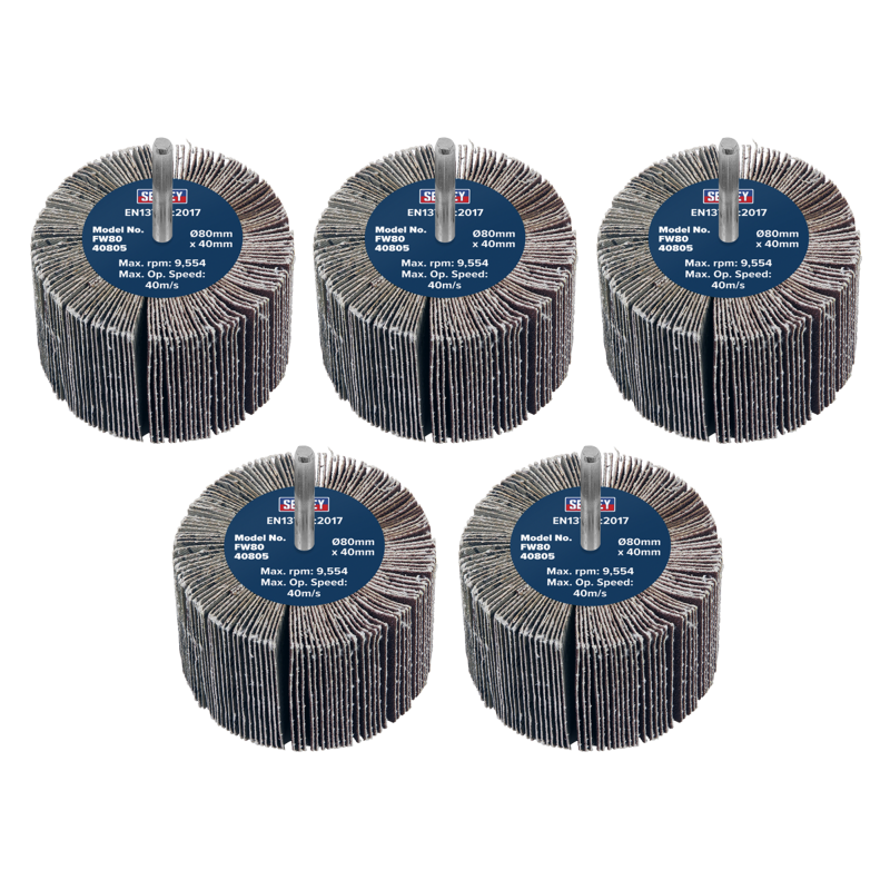 Sealey FW8040805 80 x 40mm Abrasive Flap Wheel on 6mm Shaft 80 Grit (Pack of 5)